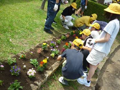 それぞれのグループごとにお花を植えていきました。