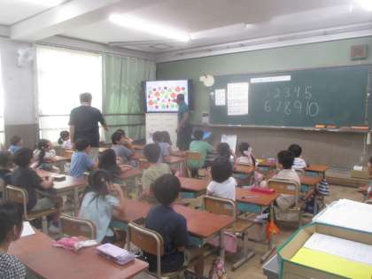 今日から始まったのは、『いくつかなクイズをしよう』です。How many 〜?の言い方を覚えたり、数字の言い方を覚えたり、たくさん英語を話しました。子どもたちは、「もっと一緒に勉強したかった!」と、さよならが名残惜しそうでした。