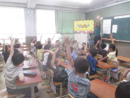 今日は、ALTの先生が来て下さり、一緒に学習をしました。子どもたちは大喜びでした。