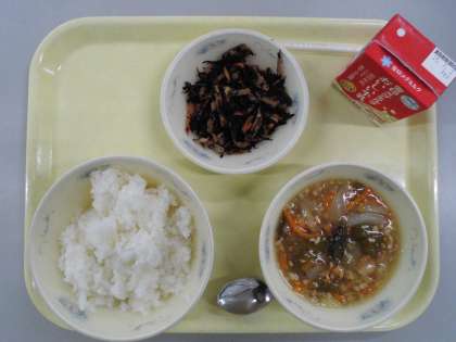夏野菜のあんかけごはんは各自が具をごはんに混ぜて食べるセルフ給食でした。