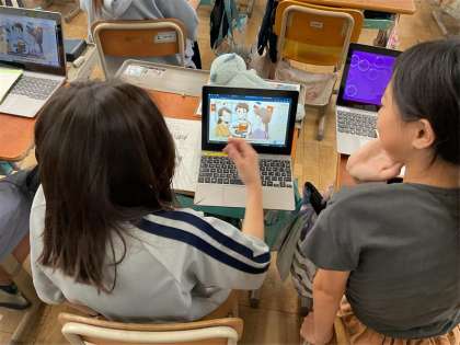 食についての学習がありました。あまり意識することがない水分の取り方について学び、熱中症などから体を守るための知識を付けました。GIGA端末を利用した学習も積極的に行っています。