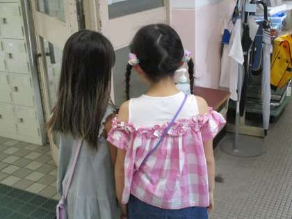 今日は、二人組で音探しをしました。「プクプク」や「カチャカチャ」という音をみつけて、発表もしました。そのあとに、祥豊小学校の校歌も歌ってみました。18日の修了式には、みんなで歌うので楽しみです。