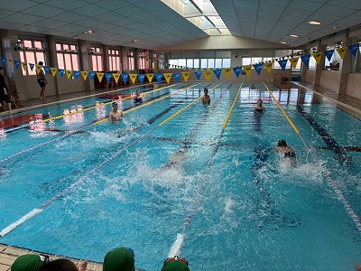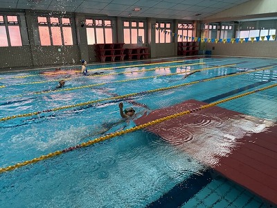 初めに、いつものようにコースに分かれて泳ぎました。