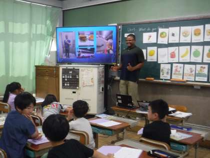 ALTの先生と一緒に2学期の外国語の学習が始まりました。ALTの先生の夏の旅行の橋を聞いたり、ゲームをしたり、みんな元気に外国語の学習ができました。