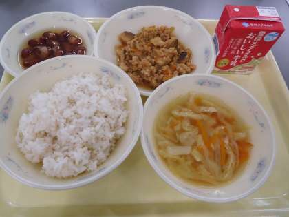 「おからそぼろ丼」は各自で具をごはんにかけて食べるセルフ給食でした。