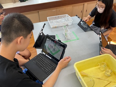 塩酸に金属がとける様子を、GIGA端末で録画するjなど、じっくり