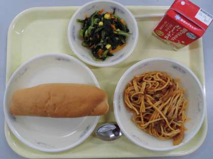 本日は人気メニューのスパゲティのミートソース煮が登場しました。