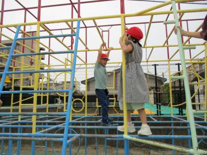 休み時間に総合遊具で遊べるようになりました。今日も安全に気を付けて遊んでいました。