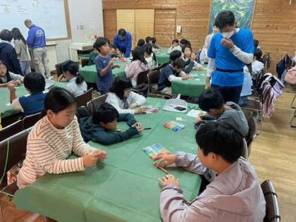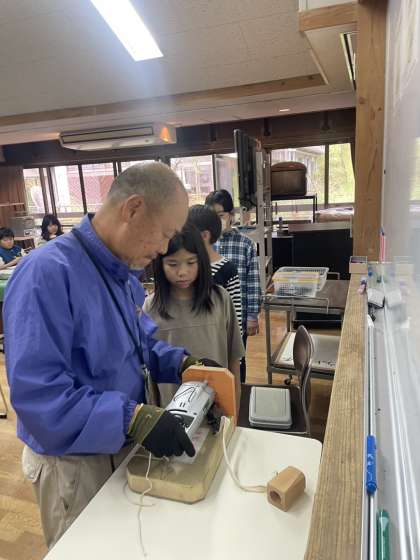 5年生 花背山の家宿泊学習 ウッドキーホルダー作成