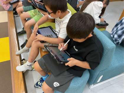 2学期から使い始めた新しい端末ですが、2年生の子どもたちはすっかり使いこなしています。吉祥院図書館の中では、マナーよく、しっかりと学習する姿を見ることができました。