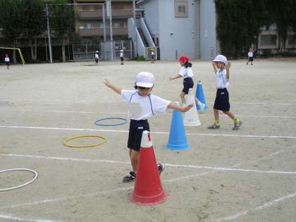 バラエティー走をしました。チョウの羽の動きを工夫したり、リズムよく「ケンケンパ」と跳んだりして、楽しそうにしていました。金曜日に素敵な姿を見せてくれることでしょう。