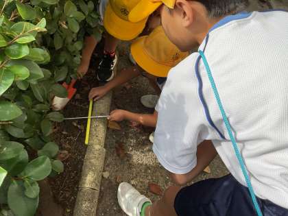 日かげと日なたの温度のちがいを調べました。今日は曇りだったのであまり変化はありませんが、次の時間に結果をまとめていくようです。