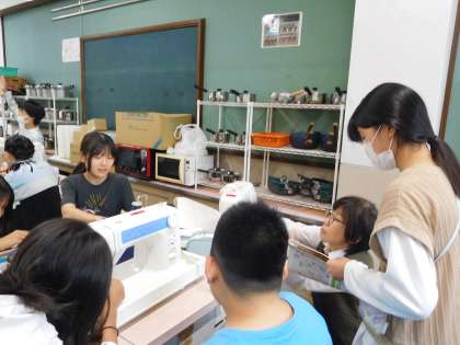 仮縫いの縫い方やミシンの下糸のかけ方を教えてもらい、自信をもってできるようになった様子でした。