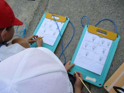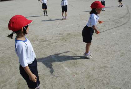 今日から「なわとびあそび」が始まりました。両足跳びやケンケン跳びなどに挑戦して、できたらカードに記入しました。休み時間にも縄跳び遊びができるので、友達と一緒に楽しんでほしいです。