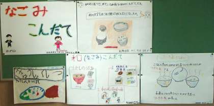 『和(なごみ)献立』をテーマにポスターを作りました。給食室前に