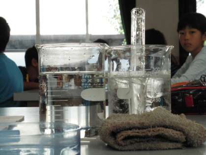 この日は,試験管の中の空気の体積の変化についての実験をしました。みんな意欲的に実験観察しています。