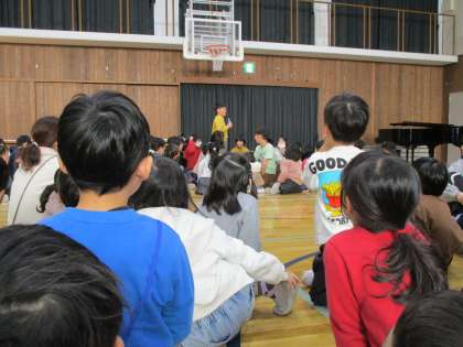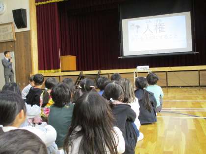 12月は人権月間です。校長先生のお話を聞いてから、絵本の読み聞かせがあり、感想の発表がありました。並んで話を聞く姿勢もよくて、成長を感じました。さらに、発表する人の方を向いて聞く姿も素敵でした。
