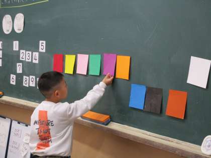 今日の英語は、これまでのおさらいをしました。挨拶の仕方、歌、じゃんけんゲーム、スターゲーム、カラータッチゲームなどを楽しみました。数や色の英語の言い方に慣れてきて、どんどん覚えています。