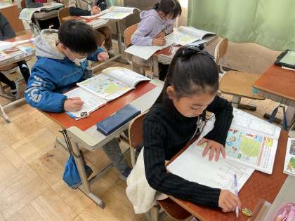 八つ橋の原材料はどこからくるのだろう?という疑問を解決するために自分たちで教科書を読みながら調べました。そして日本だけでなく外国からもきていることも知り、何でだろう?とさらに疑問をもった子もいました。なぜ京都以外から原材料を集めているのか、なぜ小豆は福井で作られてから京都にくるのか、いろいろな疑問を実際に質問して解決できるといいですね。