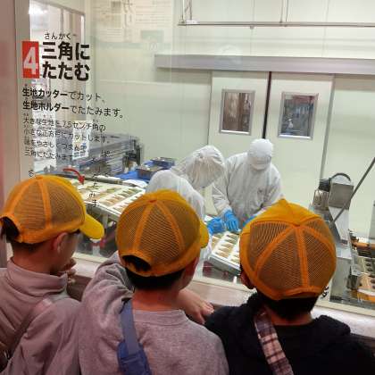 生八つ橋の人気のひみつを見つけたり、働く人の様子を見たりして来ようと「おたべ本館」まで行って来ました。少し長い道のりかと思いましたが、みんな元気に歩いて行くことができました。生八つ橋が作られる様子を見たり、疑問に思っていることを質問したりすることができました。