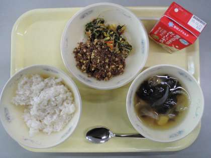 12月の給食目標は「いろいろな国の食べ物を知ろう」ですが、今日は朝鮮半島の味を楽しみ、学ぶことができました。