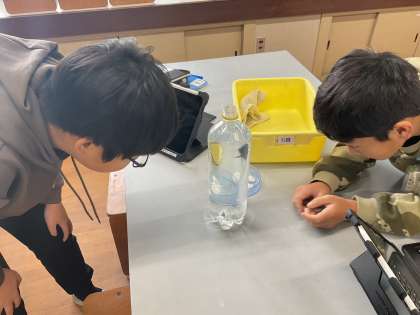 今日は、「とけるって何?」から始まり、食塩が水にとける様子を