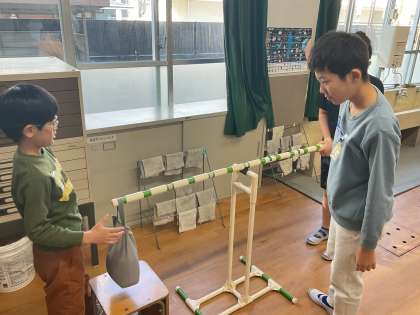 今日は、1組で「重いものを小さな力で持ち上げるにはどうすれば
