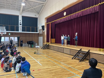 児童会による寸劇を交えた学校紹介でした。
