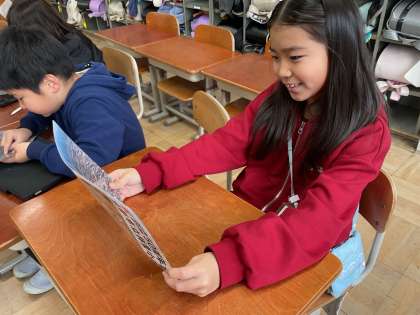 3枚目の写真は、記念のクリアファイルを手にして喜ぶ子どもたち