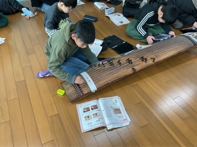 琴を使って「さくらさくら」を演奏しました。難しかったようですが「上手にできた!」「全部弾けた!」と楽しく演奏することができました。待っている間はアプリを使って、琴の演奏の練習をしました。