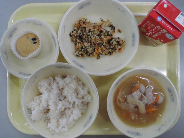 見た目は洋菓子のマドレーヌに似ていますが、米粉をベースに三温糖などで味付けをし、黒豆を乗せた和風のデザートです。