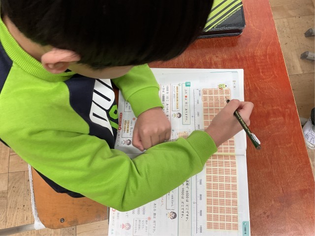 そのあとは、いろいろな考え方をみんなで発表し合い、まとめの問題を解きました。数が大きくなってきて、難しさを感じる子もいますが、みんなで学び合って成長していきたいです。