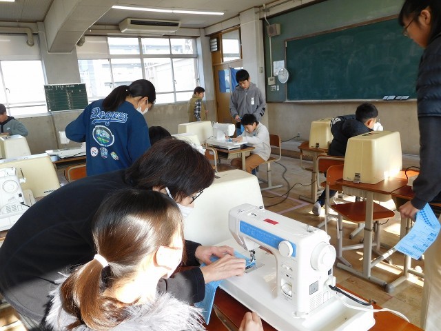 学校ボランティアの方に来ていただき、ミシンの実習を