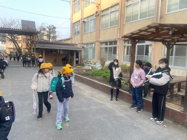 朝の登校時、委員会活動の一環で、あいさつ運動を