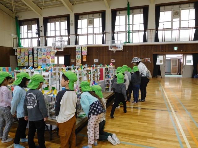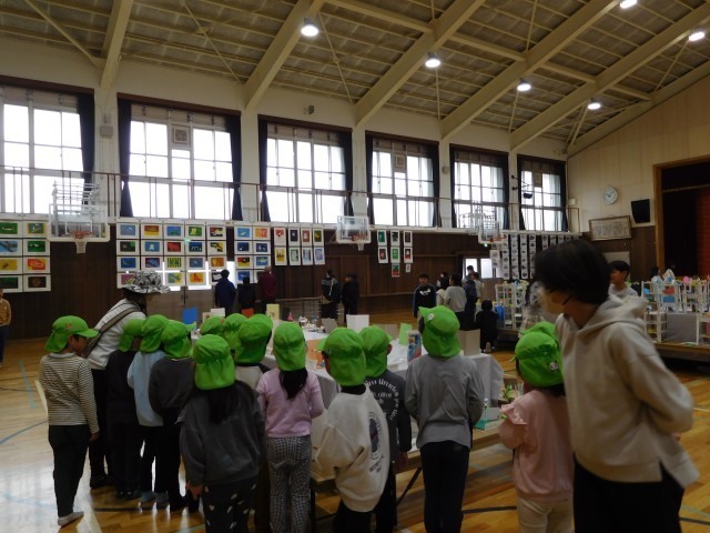 「お兄ちゃんのがあった!」「小学校に行ったら、こんなのが作れるなんてすごい!」「早く学校に行きたいなぁ!」と目を輝かせながら、小学生の作品を見ていました。
