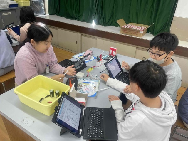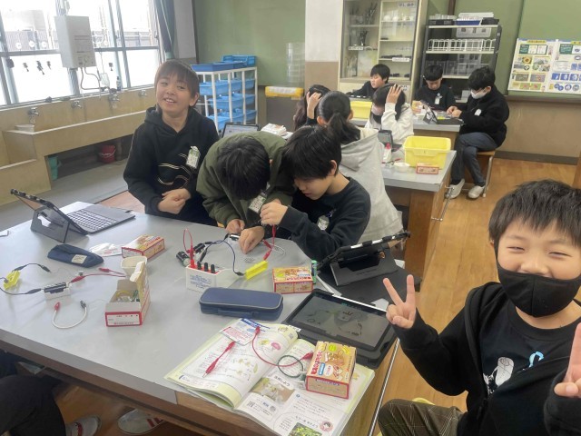 5年生が理科の実験をしています。