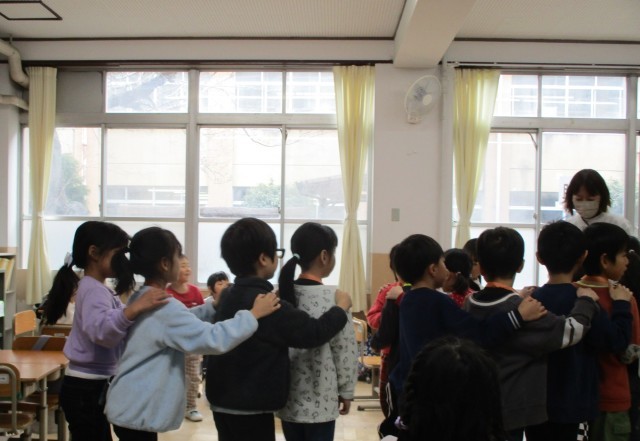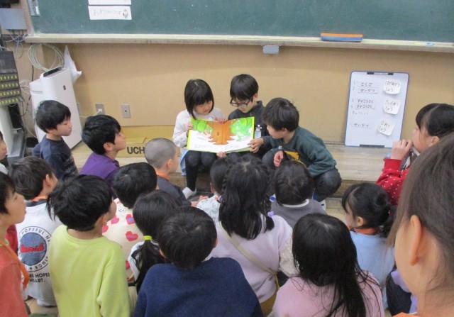 保育園の年長の人たちが、1年生の教室に来てくれました。楽しい会になるように準備を進めていた子どもたち。とても張り切ってゲームや絵本の読み聞かせをしていました。優しく声をかけたり手をつないで誘導したりする姿に成長を感じて嬉しくなりました。