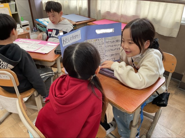 生活科の学習も、終わりが見えてきました。お家でインタビューをしてまとめた『せいちょうものがたり』の発表会をしています。発表会が終わると、「みんなすごい成長してた!」や、「こんなすごいことしてたんやと思った!」など、友だちの成長や素敵なところに気づけた子がたくさんいました。これからも、友だちの素敵をたくさん見つける2年生でいてほしいと思います。