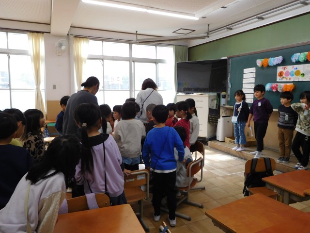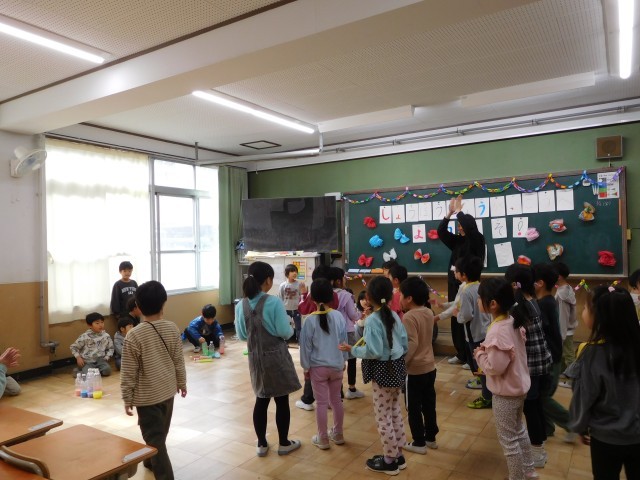祥豊保育園の園児さんが来てくれ、1年生と交流しました。