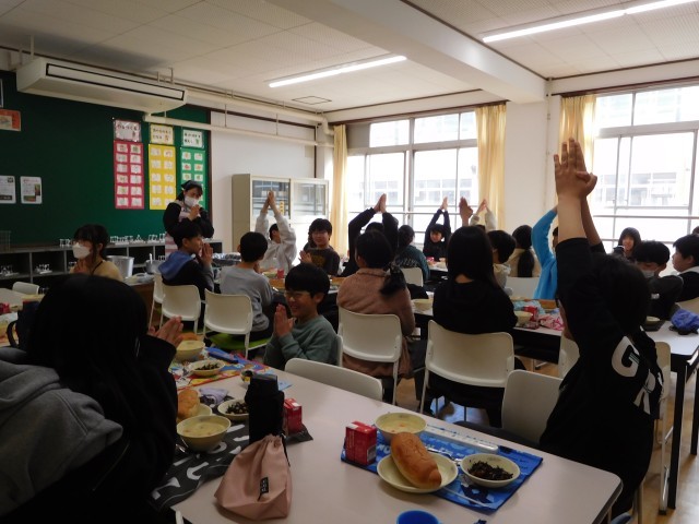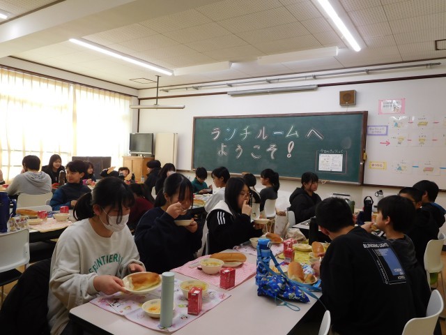 グループの友達との会話もはずむ中、おいしい給食を食べていました。