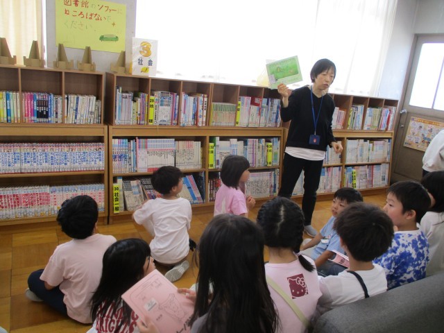 2年生になって初めての図書館での学習でした。本が置いてある場所が分かるようになり、読みたい本を2冊借りて嬉しそうに教室へ戻ってきました。