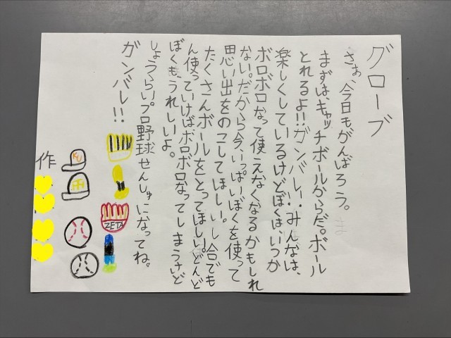 「どうしようかな。」と手が止まることもありましたが、自分の思いをしっかりと言葉で表現することができました。たくさんの方にも見ていただきたいと思います。(本人たちにも了承を得ています。)