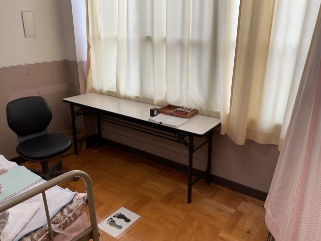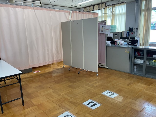 ➁診察時は、個別のスペースを確保できるよう保健室のレイアウトを変更する。