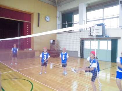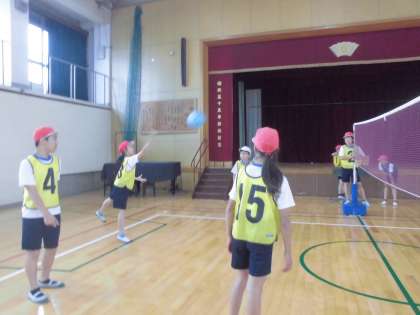 ソフトバレーボールをしました。チームでボールをつなげるようにしました。