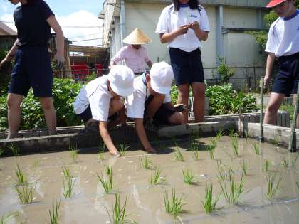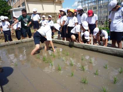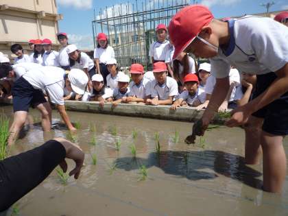 みんな初体験ながらも,地域の村田さんのお話をよく聞いて,田植えができました。