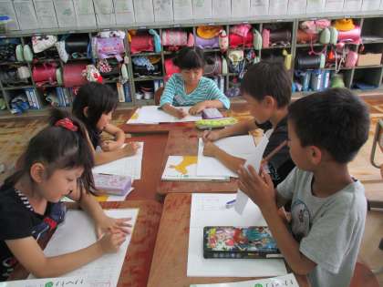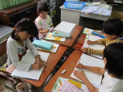 話す聞くの学習です。お知らせの仕方,メモの取り方を学習しました。みんな集中して話したり,メモを取ったりしていました。