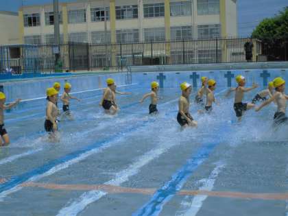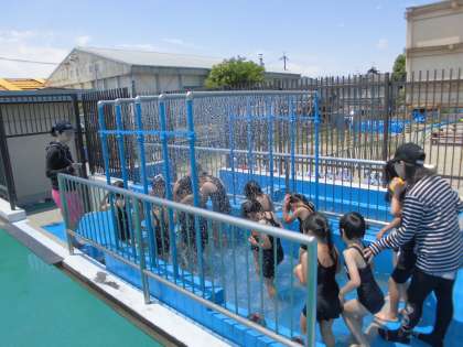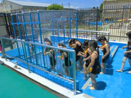 小学校初めての水遊びです。低水位での水遊びでした。シャワーを浴びたり,足洗いや腰洗いなどをしたり,小学校でのプール学習のルールなどを知りました。ルールを守ってみんな楽しんで活動できました。