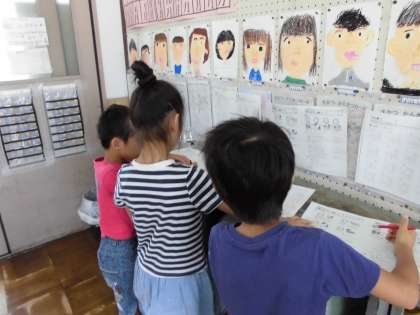1年生は,できたらすぐに先生みてもらえるように先生を中心に席を配置して取り組んでいます。