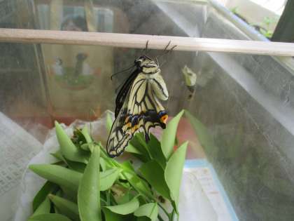 そして,本日アゲハチョウが教室に迷い込んできました。「教室を覚えていて,戻ってきたのかなぁー!」と子どもたちはうれしそうでした。