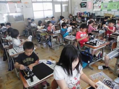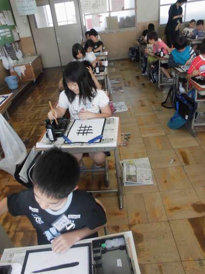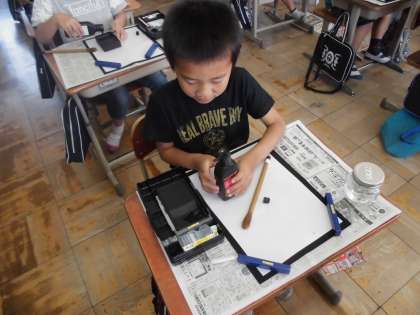 力加減を調整しながら,毛筆で様々な線の太さを書きました。